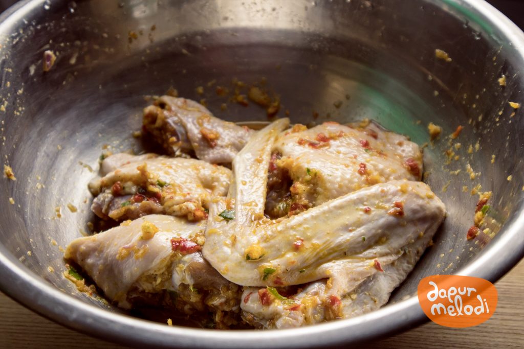 - Bebek yang sudah dicuci bersih dilumuri rata dengan bumbu cincang tadi. Simpan dalam kulkas selama 20 menit.